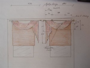 audumu un nepieciešamo materiālu aprēķins : pilsētas stils, aizkari uz riņķiem, lambrikeni un kaskādes, franču un austriešu markīzes, romiešu žalūzijas, japāņu paneļi, „kafe” aizkari, spilveni, pārklāji, baldahīni;